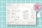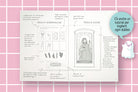 - 8 MINIATURE: o, in gergo, thumbnail, spazi piccoli che hanno le stesse proporzioni della pagina da disegno per fare delle prove di composizione in miniatura (nella versione LETTERING in ogni thumbnail trovi una griglia di composizione studiata ad hoc per ogni scritta!)