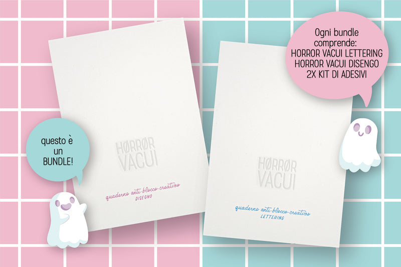 TI presentiamo il bundle HORROR VACUI: il deal che ti permette di portarti a casa i due tomi dedicati al blocco creativo, sia LETTERING CHE DISEGNO.