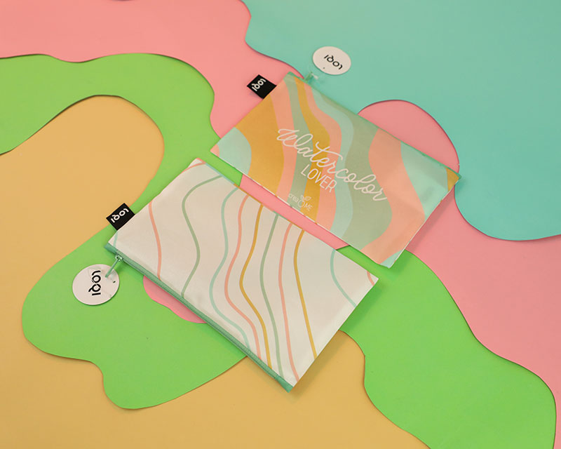 - 1 mini zip pocket Loqi con grafica coordinata e lettering “Watercolor Lover”