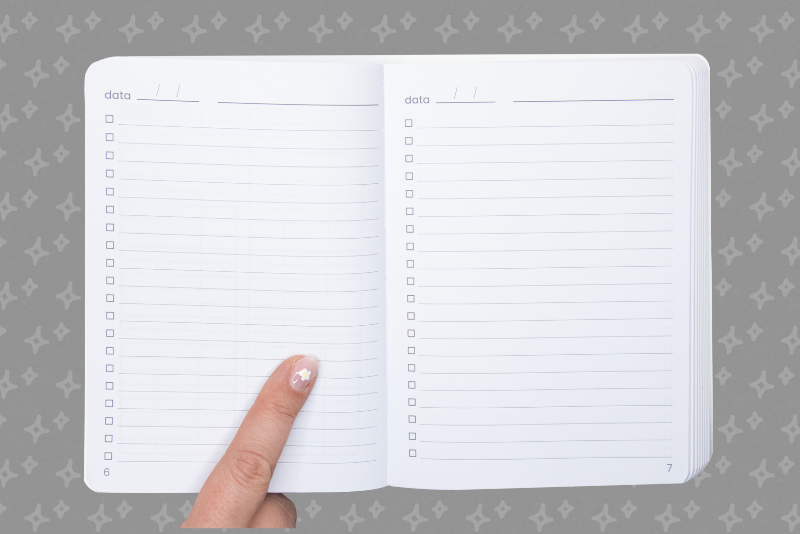 Questo quadernino 12x17cm ha 160 fogli, 320 pagine, di carta 80 gr, con il perfetto template per impostare tutte le vostre LISTE!