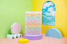 Il kit si compone di una busta di carta di riso (il cui sigillo ci aspettiamo che tu strappi con una certa violenza) stampata con trama arcobaleno, con all'interno 3 fogli di adesivi: